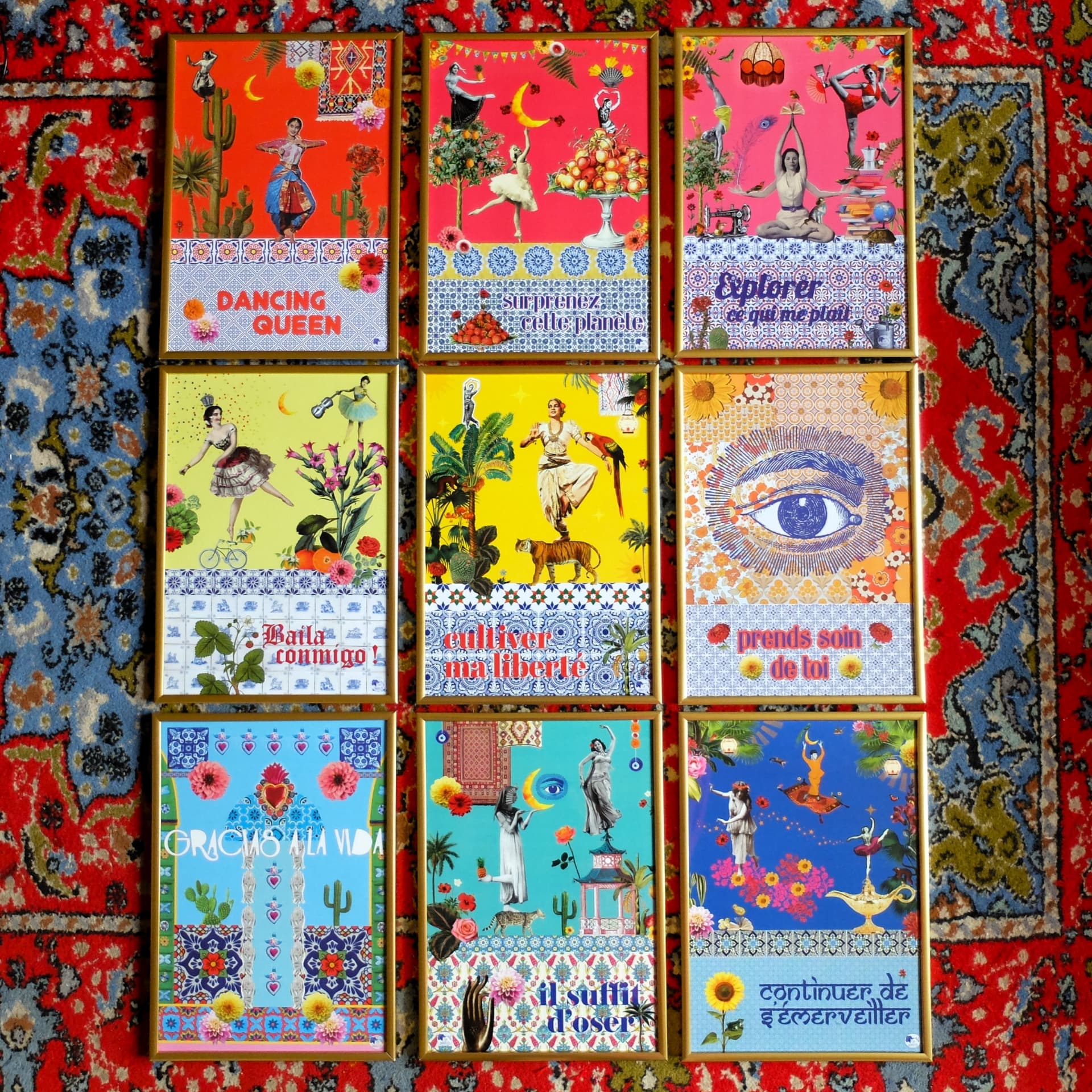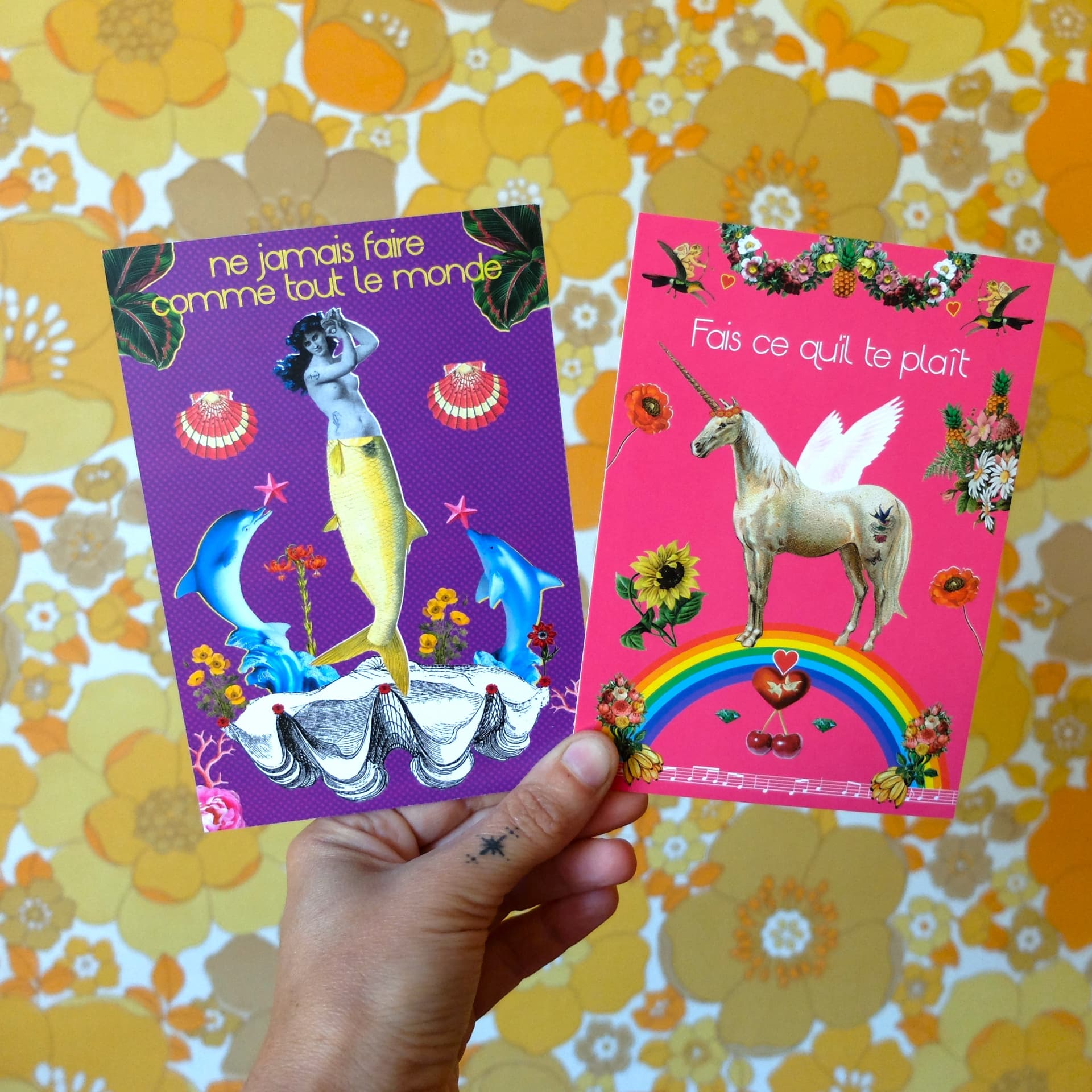 La collection "imprimée" explore les thèmes du voyage (local ou lointain), de la danse, de la musique, de la féminité, de la flore et la faune par le collage digital. Elle est composée d'illustrations un brin kitsch qui se déclinent en cartes postales, cartes d'anniversaire, badges, aimants, carnets et affiches.