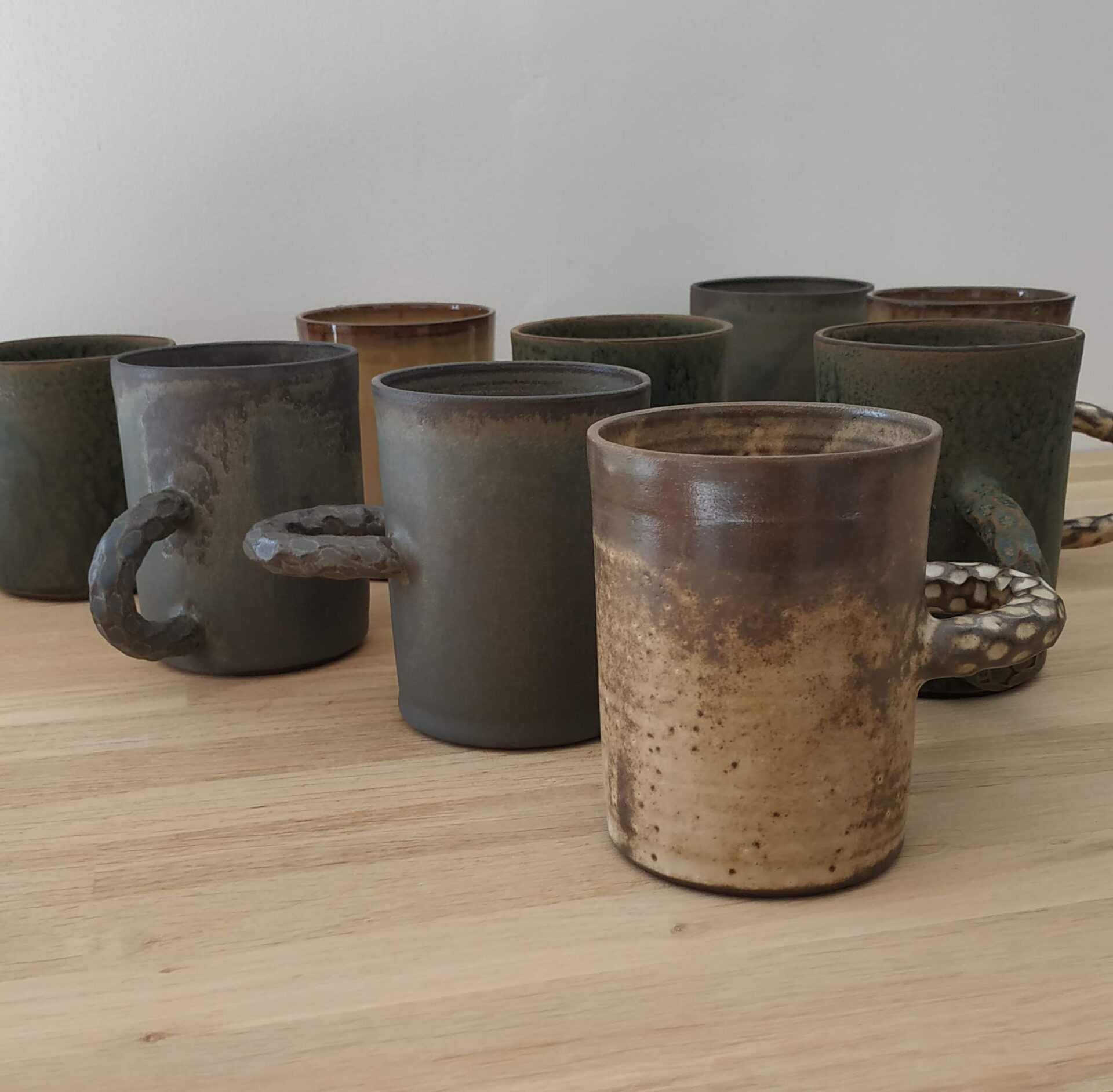 Je développe une collection de petites séries et pièces uniques façonnée au tour de potier ou en modelage en grès et porcelaine.