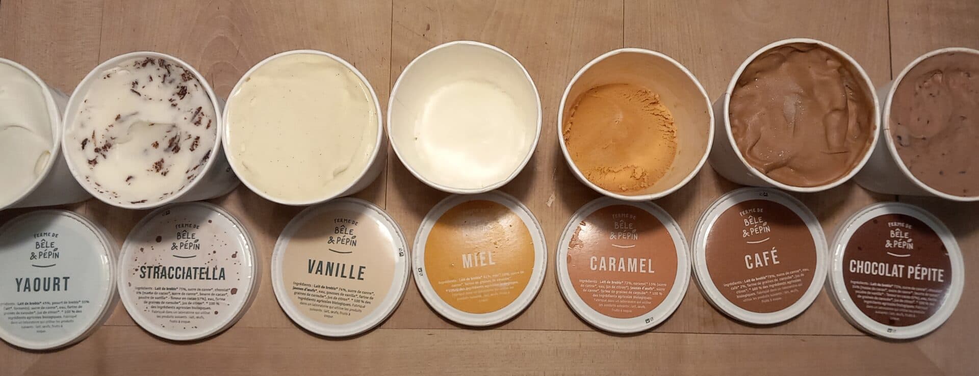 Le lait de brebis, naturellement riche, est particulièrement adapté à la fabrication de glaces. Il permet de formuler des recettes sans ajouter de crème ni de poudre de lait. Le choix des ingrédients est fait avec soin. Le sucre, le chocolat et le café sont issus du commerce équitable. Les fraises et la menthe sont cueillies dans une ferme voisine. Et bien sûr le bon lait des brebis, élevées avec respect et amour, est la base des recettes.
